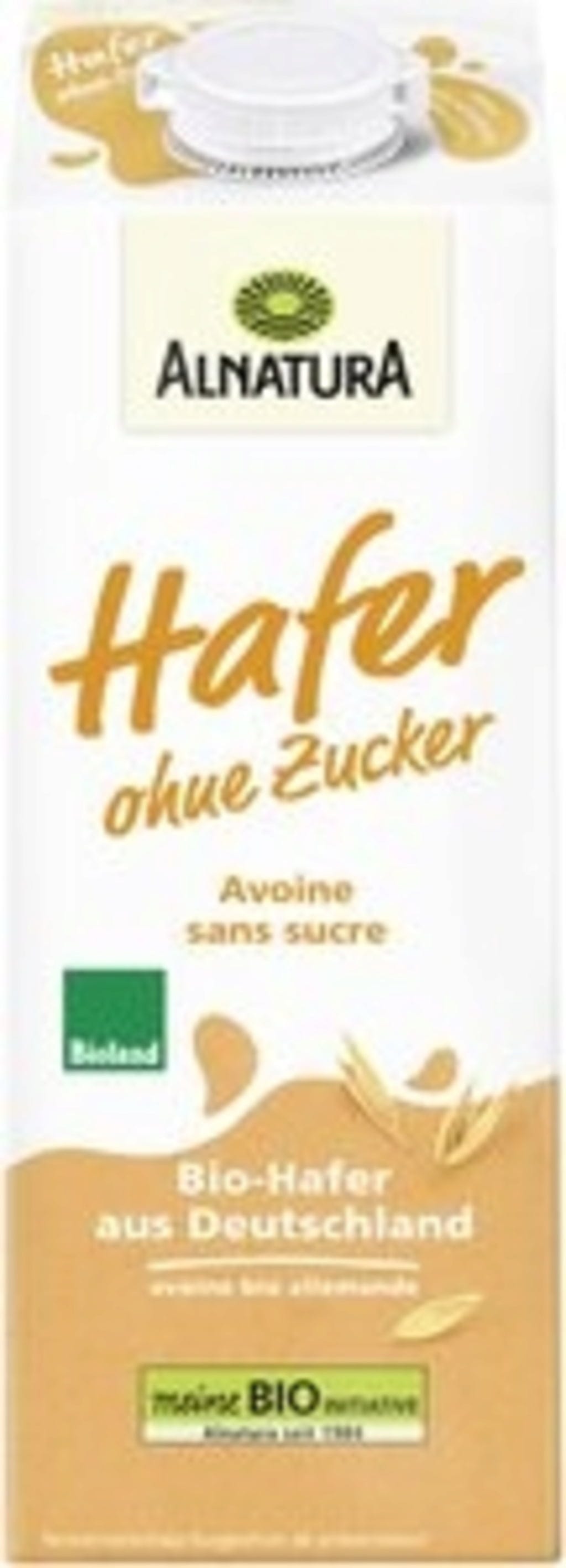 De Alnatura biologische haverdrank zonder toegevoegde suiker is gemaakt van biologische haver. De haver wordt in Duitsland geteeld en verwerkt volgens Bioland-kwaliteit. Het recept voor de haverdrank is uiteraard vrij van lactose en melkeiwit. Doordat er in het recept geen toegevoegde suikers zitten, bevat de haverdrank slechts 0,5 gram suiker per 100 ml. De milde en volle smaak verfijnt jouw koffie of muesli perfect.