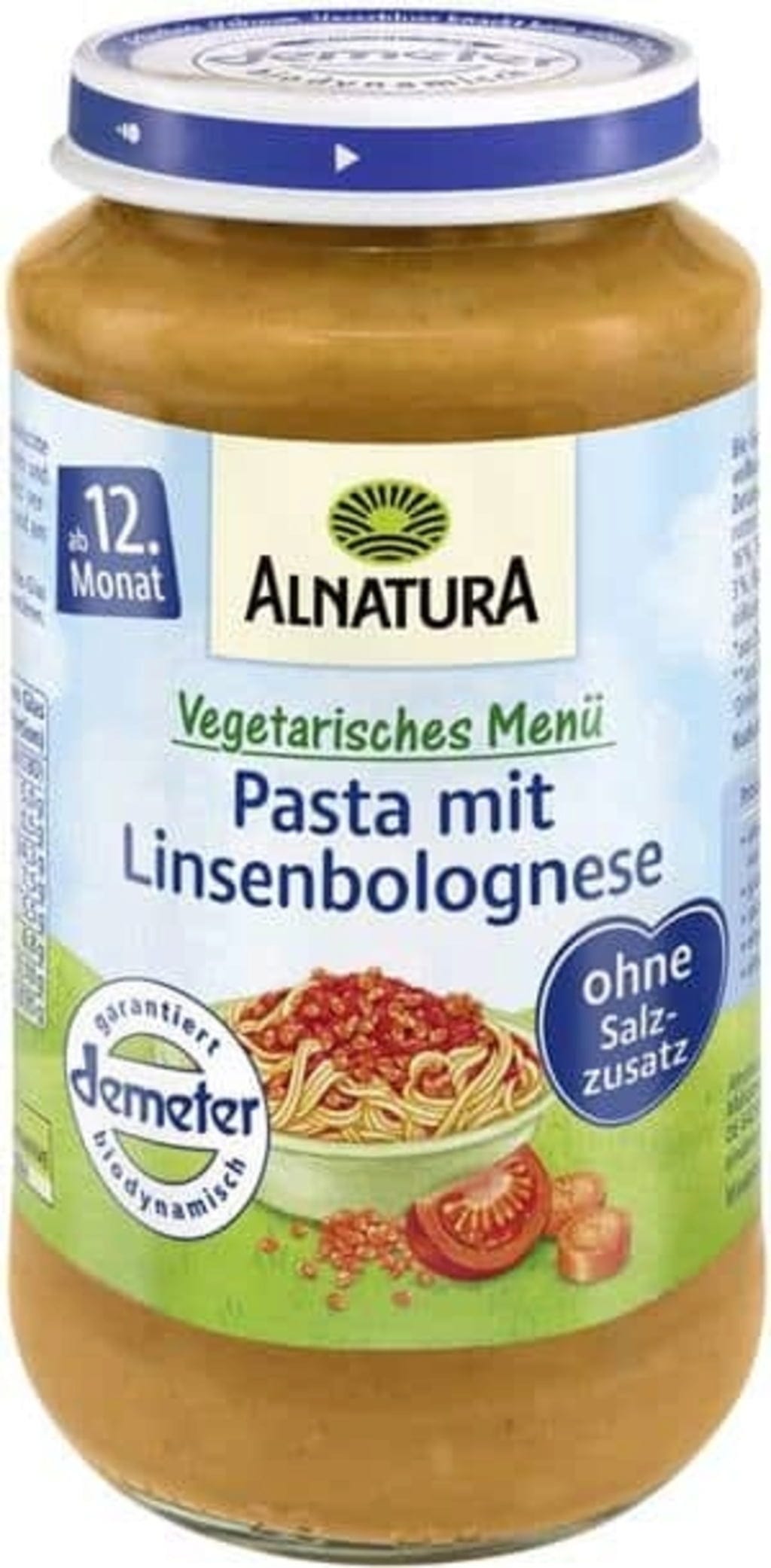 Begin er al vroeg mee als je een Italiaanse foodie wilt worden: deze volkoren speltpasta in plantaardige linzensaus in Bolognese-stijl scoort niet alleen met veel smaak! De consistentie met fijne stukjes en het milde recept zonder zout, toegevoegde zuivelproducten of kunstmatige smaakstoffen zorgen voor culinair genot - voor baby's vanaf 12 maanden. Alle ingrediënten zijn afkomstig van gecontroleerde biologische teelt of Demeter biologische landbouw.