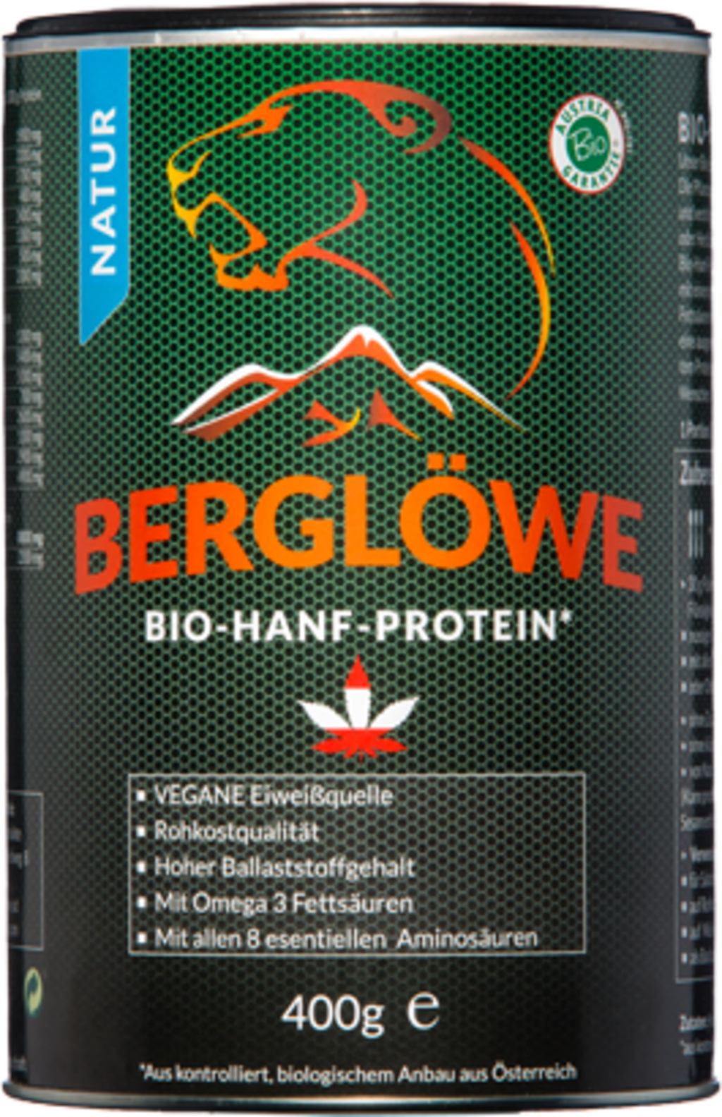Berglöwe Biologische Hennepproteïne Naturel, een plantaardig premium eiwit uit Oostenrijkse eetbare hennep overtuigt met een eiwitgehalte van 46% en een vezelgehalte van 31%. Het bevat ook alle essentiële aminozuren en een hoog gehalte aan mineralen en sporenelementen.