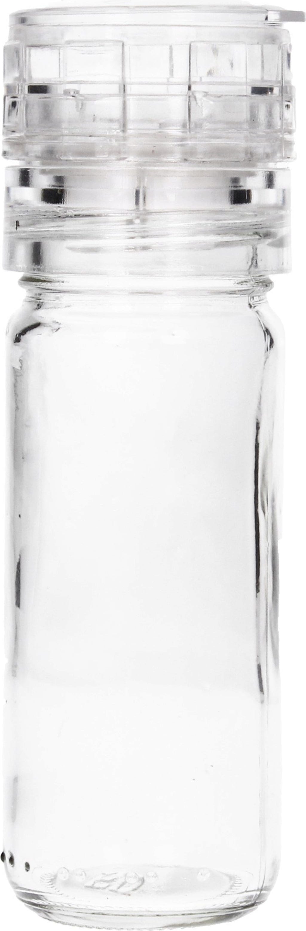 De kruidenmolen is gemaakt van glas, is 14 cm hoog, heeft een zwart-wit keramisch maalmechanisme en is navulbaar.