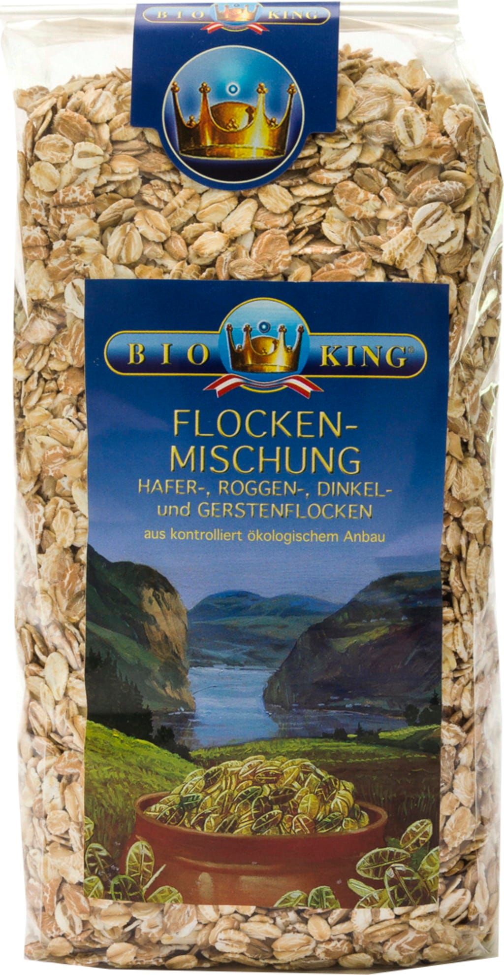De Bio King Vlokkenmix is een volkoren product gemaakt van haver-, spelt-, gerst- en roggevlokken. Een mix die ideaal kan worden opgenomen in de dagelijkse voeding.