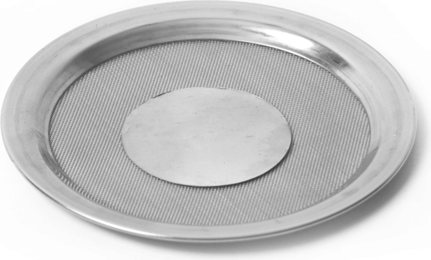 Deze metalen schijf van roestvrij staal leg je op een rookzeef om deze te beschermen en om ook fijn gemalen wierookmixen veilig te kunnen branden.