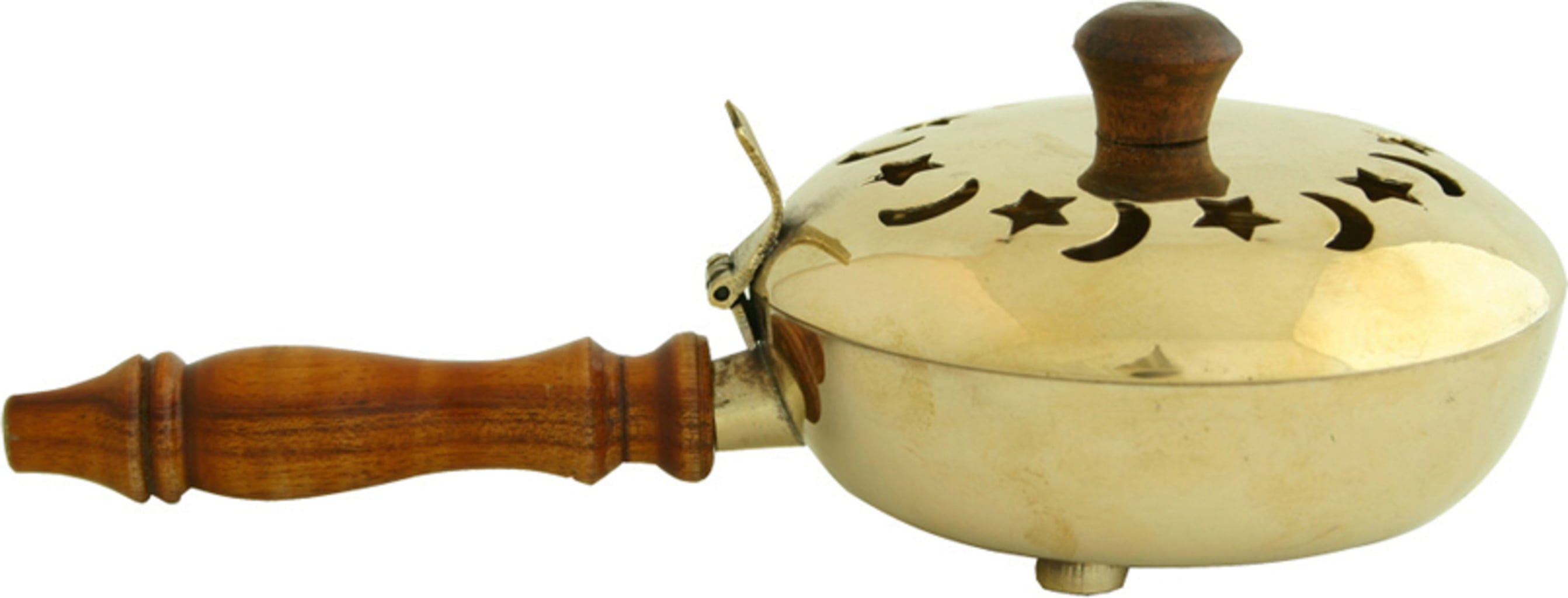 De ALADIN rookpan met Arabische uitstraling valt op door een patroon van maan en sterren. Voor een betere grip zijn het handvat en de knop bekleed met hout. Dankzij kleine voetjes aan de onderzijde kan de pan veilig worden neergezet.