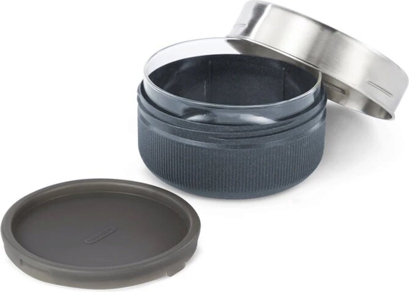 Praktische lunchschaal van temperatuurbestendig borosilicaatglas met siliconen deksel. Extra beschermd door een deksel van polypropyleen en 30% duurzame PEFC-houtvezels en een deksel van hoogwaardig roestvrij staal. Antislip siliconen inzetstuk op de bodem. Volledig lekvrij en vaatwasmachinebestendig (het beste in het bovenste vak).