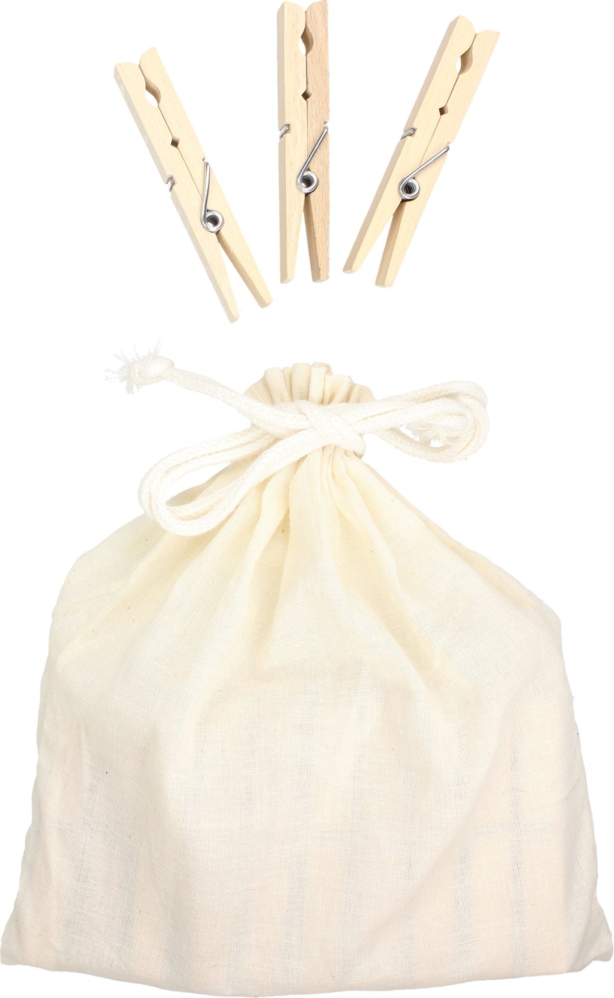Bürstenhaus Redecker Houten Wasknijpers met Spiraalveer, 20 stuks in stoffen zak