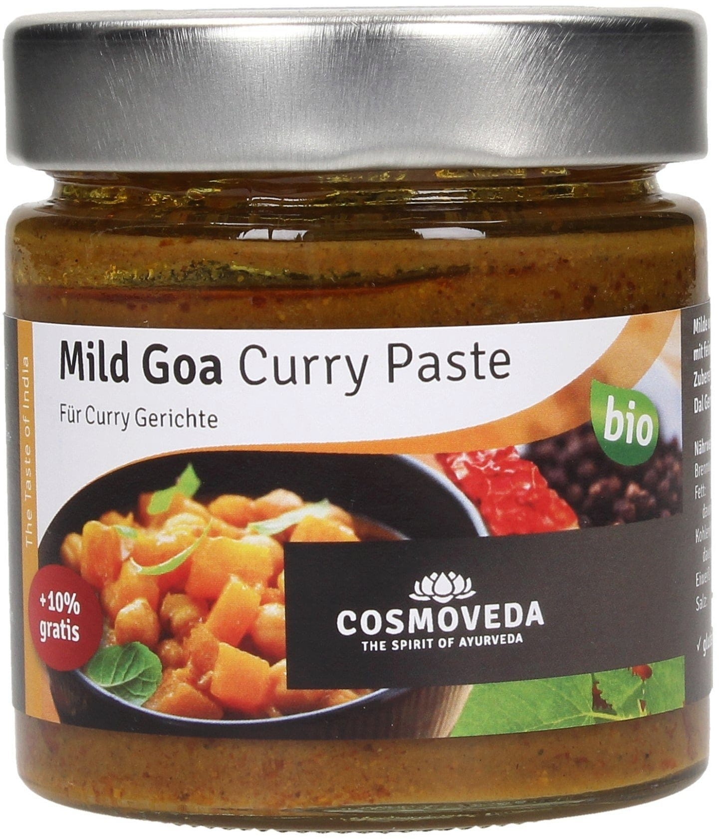 - West-Indische milde currypasta uit de regio Goa met fijne kruiden, tomaten en tamarinde voor de bereiding van smakelijke groentecurry's en dalgerechten.
