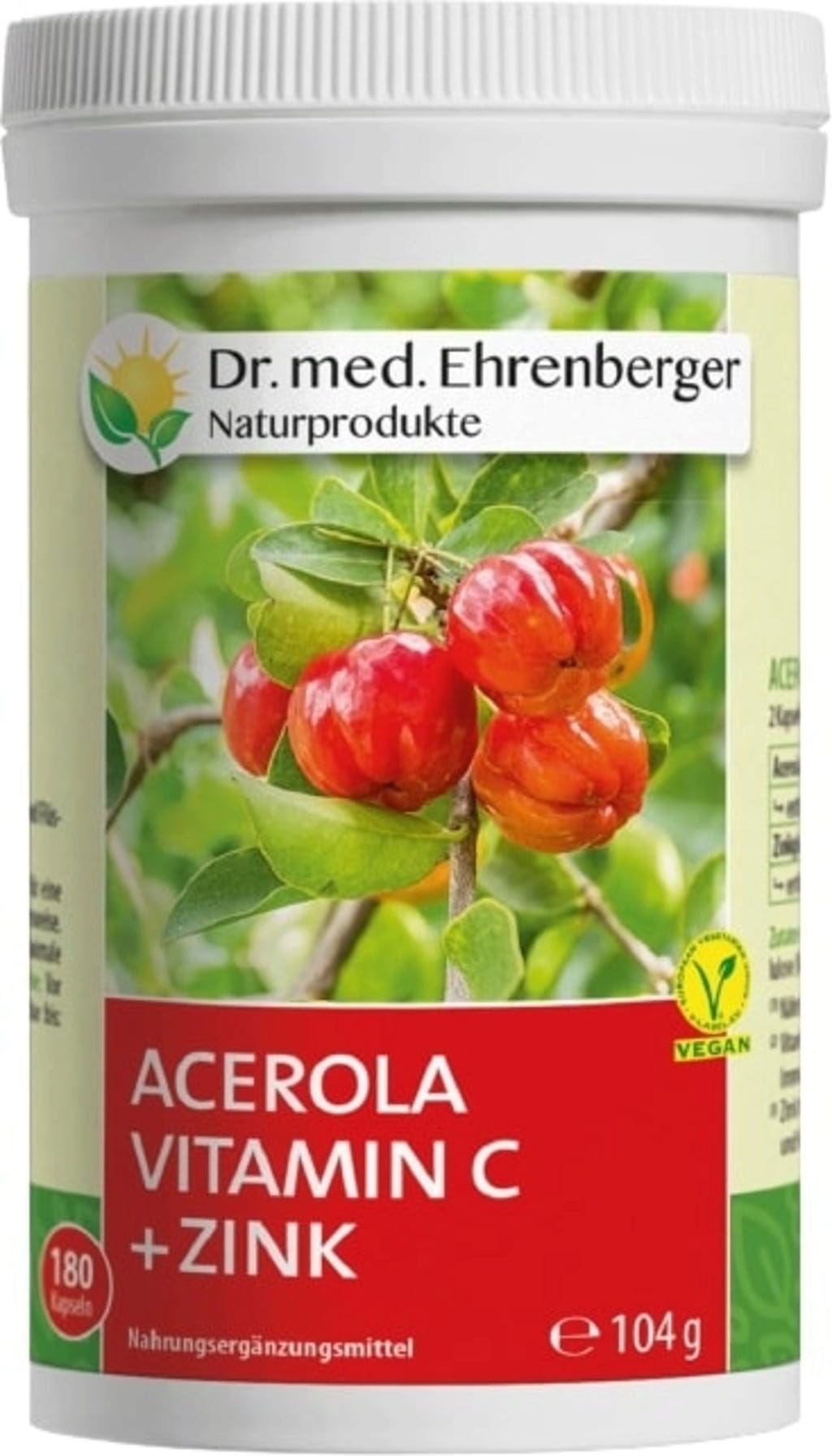 Dr Ehrenberger Bio- & en Natuurlijke Producten Acerola Vitamine C + Zink, 180 Capsules