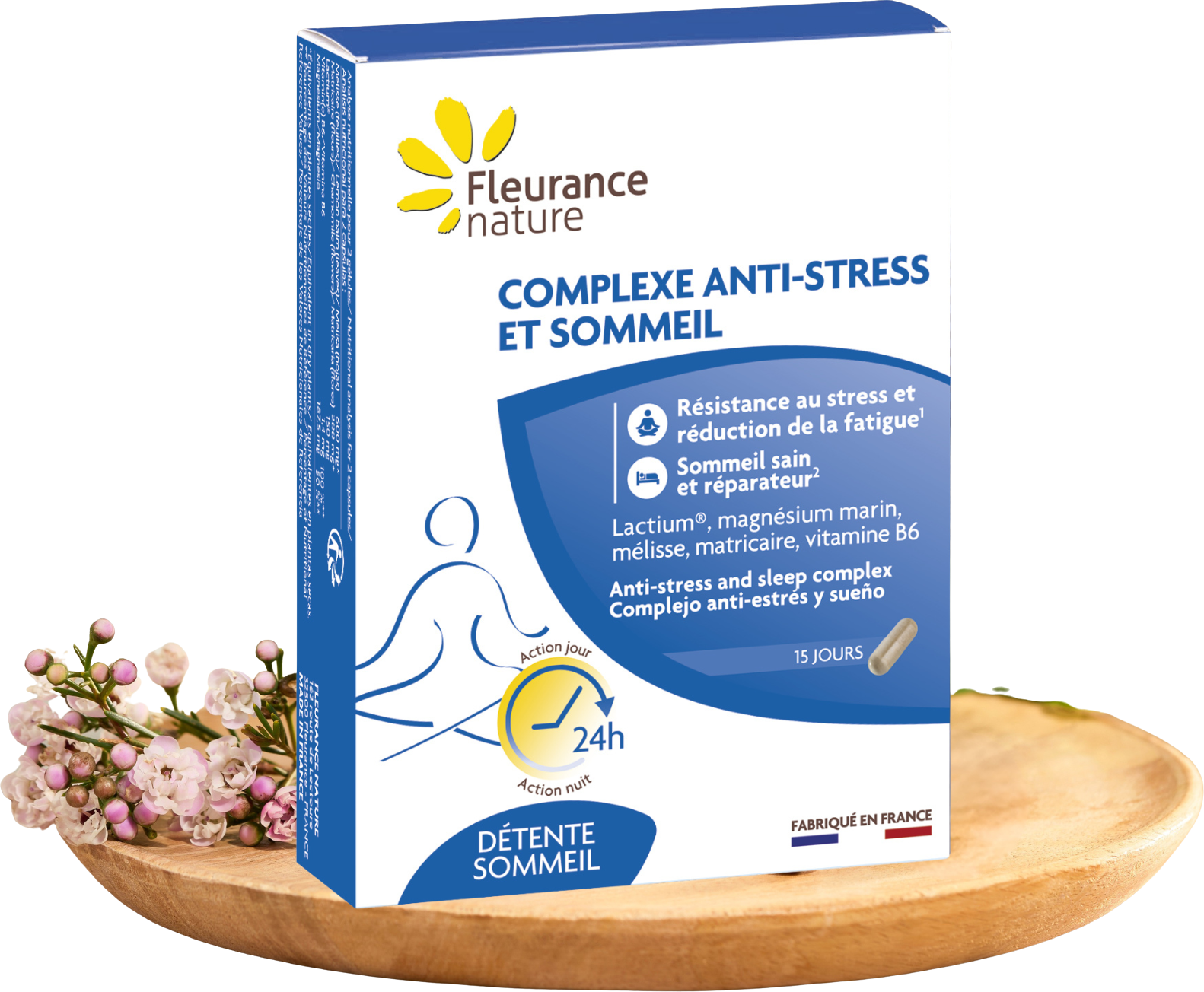 Het product is ontwikkeld op basis van het principe van de chronobiologie, oftewel de biologische ritmes van het lichaam en in het bijzonder het circadiane ritme. Daarom moet er 's ochtends en 's avonds telkens één tablet worden ingenomen om de behoefte over 24 uur te dekken. Het bevat citroenmelisse, kamille, magnesium en vitamine B6.