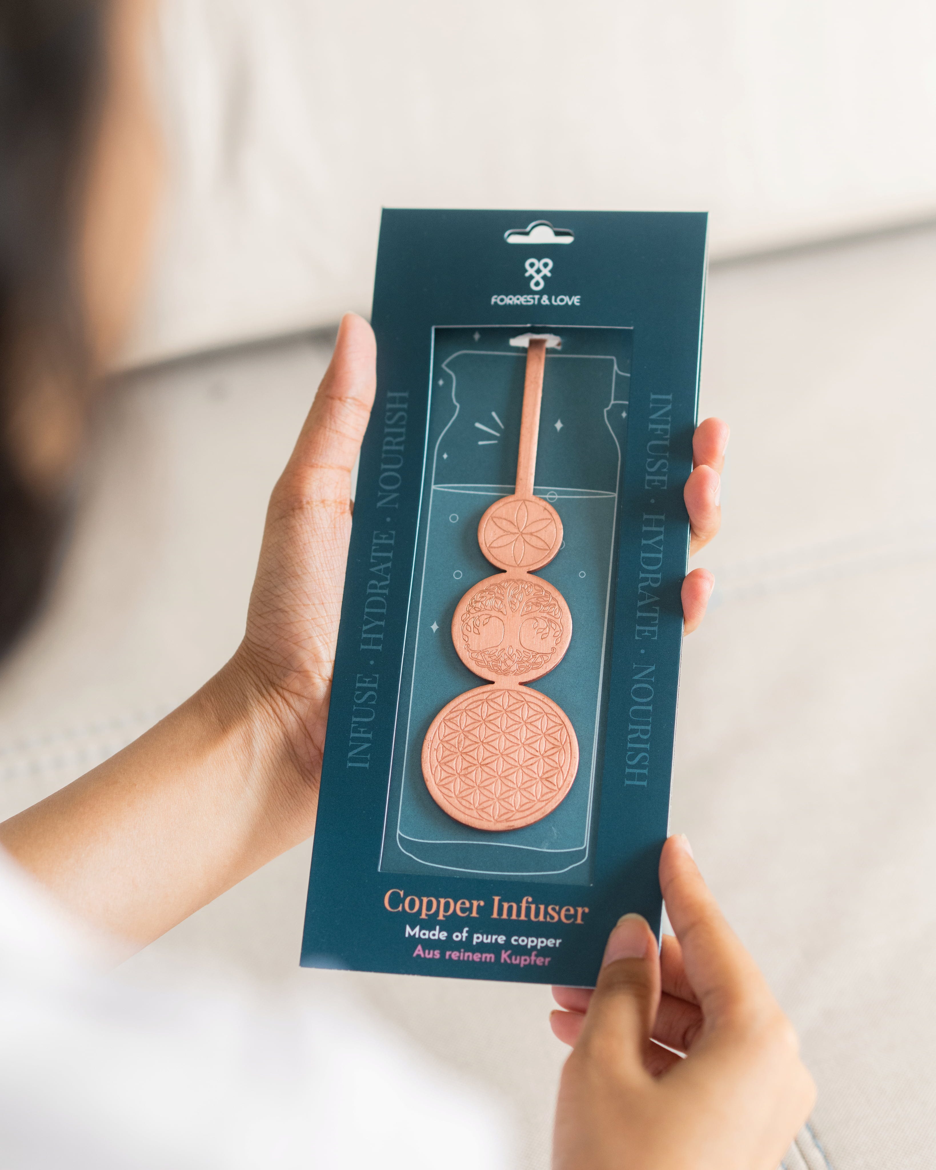 Dit zorgvuldig handgemaakte FORREST & LOVE-accessoire kan op bijna elk waterreservoir worden gebruikt om te genieten van de antimicrobiële, antioxiderende en ontstekingsremmende eigenschappen van koper. Het ontwerp van het accessoire is elegant, gaat eeuwig mee en is een zeer waardevolle besparing van hulpbronnen.