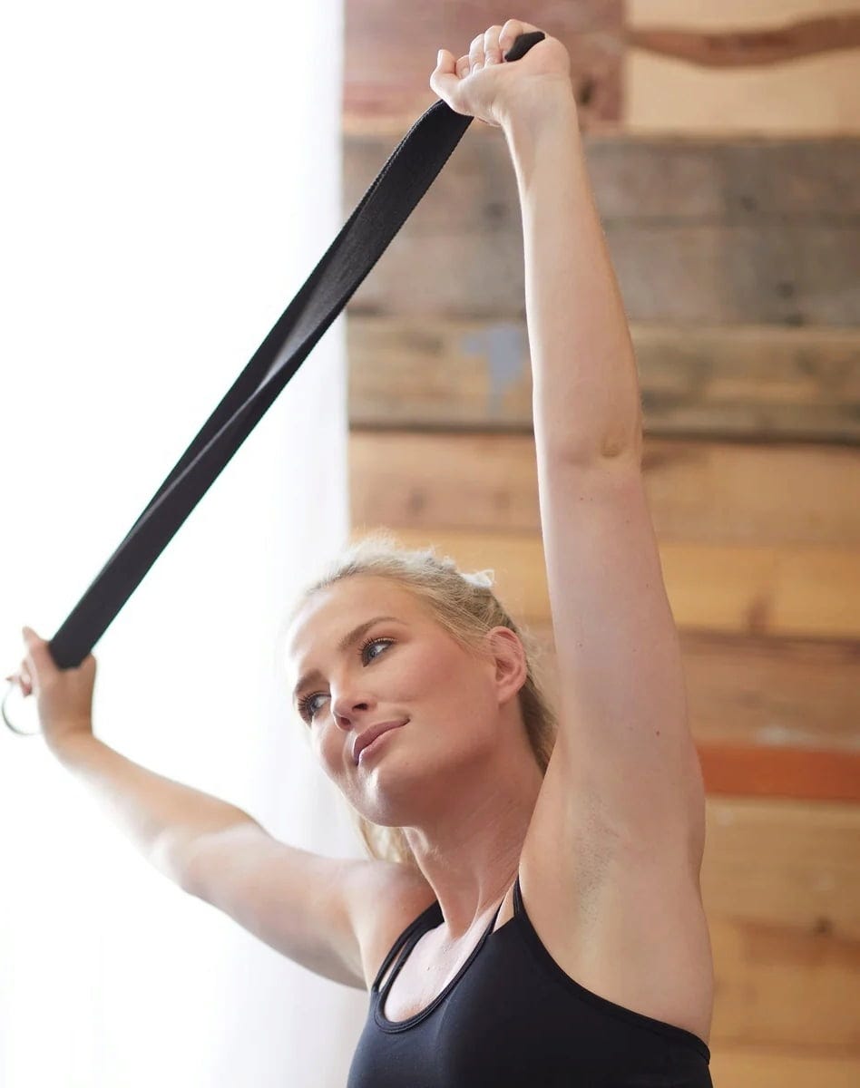 De 244 cm lange riem ondersteunt je bij het veilig bereiken van complexe houdingen. Hij biedt een stevige grip om rekkingen gedurende een langere periode gecontroleerd uit te voeren.