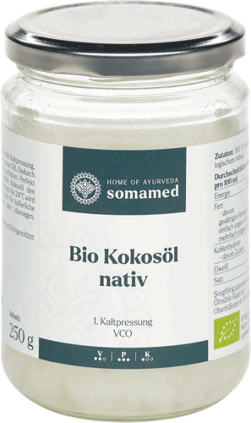 Home of Ayurveda somamed Biologische Kokosolie VCO in een Glazen Pot, 250 g € 9,59 (€ 38,36 / kg)