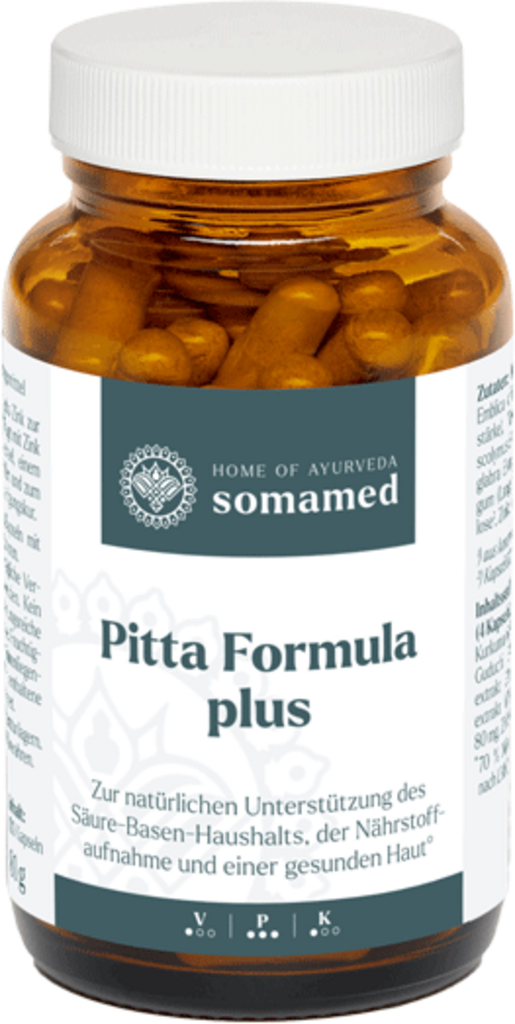 De formule in Pitta Formula plus combineert geselecteerde kruiden en extracten die in de Ayurveda zeer gewaardeerd worden om de Dosha Pitta te harmoniseren. De plantaardige stoffen worden gecombineerd met zink om de formule optimaal af te ronden. Zink draagt bij aan een normaal zuur-basemetabolisme en aan het behoud van een normale huid.