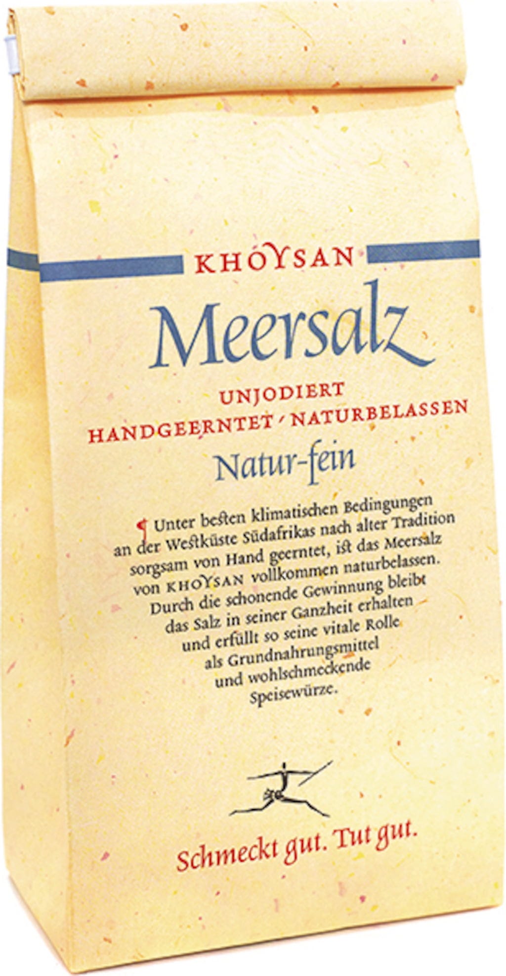 Fijn naturel zeezout is HET basiszout voor de fijne keuken en de basis voor alle kruidenzoutmengsels van Khoysan. Behalve als keukenzout is het ook uitstekend geschikt voor het bereiden van natuurlijke pekel, voor baden, als lichaamsscrub en andere natuurlijke zouttoepassingen.