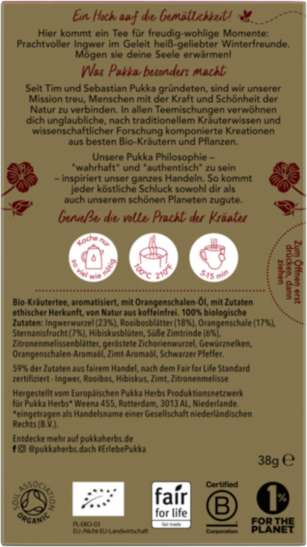 | Fabrikant: | Lipton Teas and Infusions Germany GmbH, Axel-Springer-Platz 3, c/o WeWork, 20355, Hamburg, Duitsland, kontakt@pukkaherbs.de |