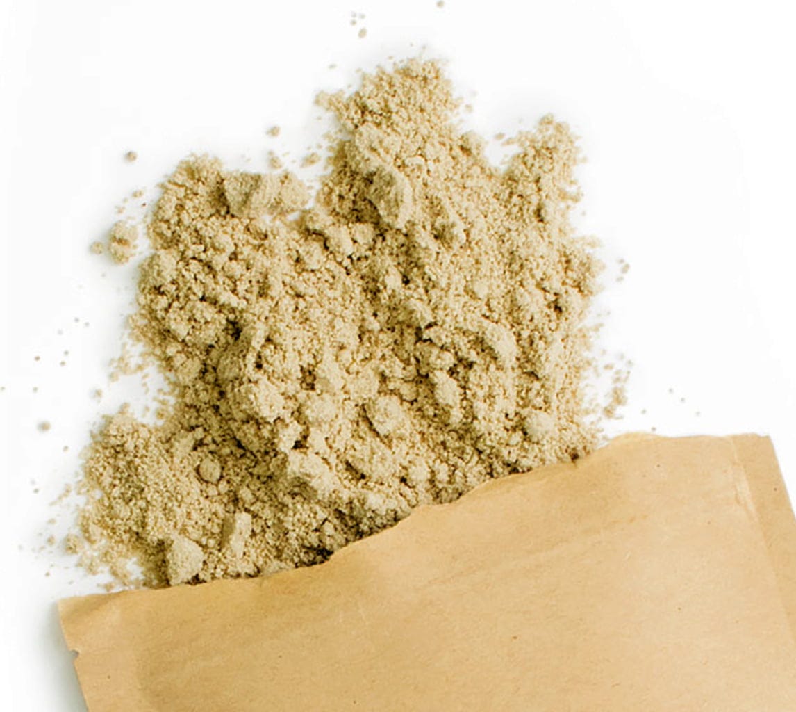 Fijngemalen, ongebrande, rauwe koffiebonen