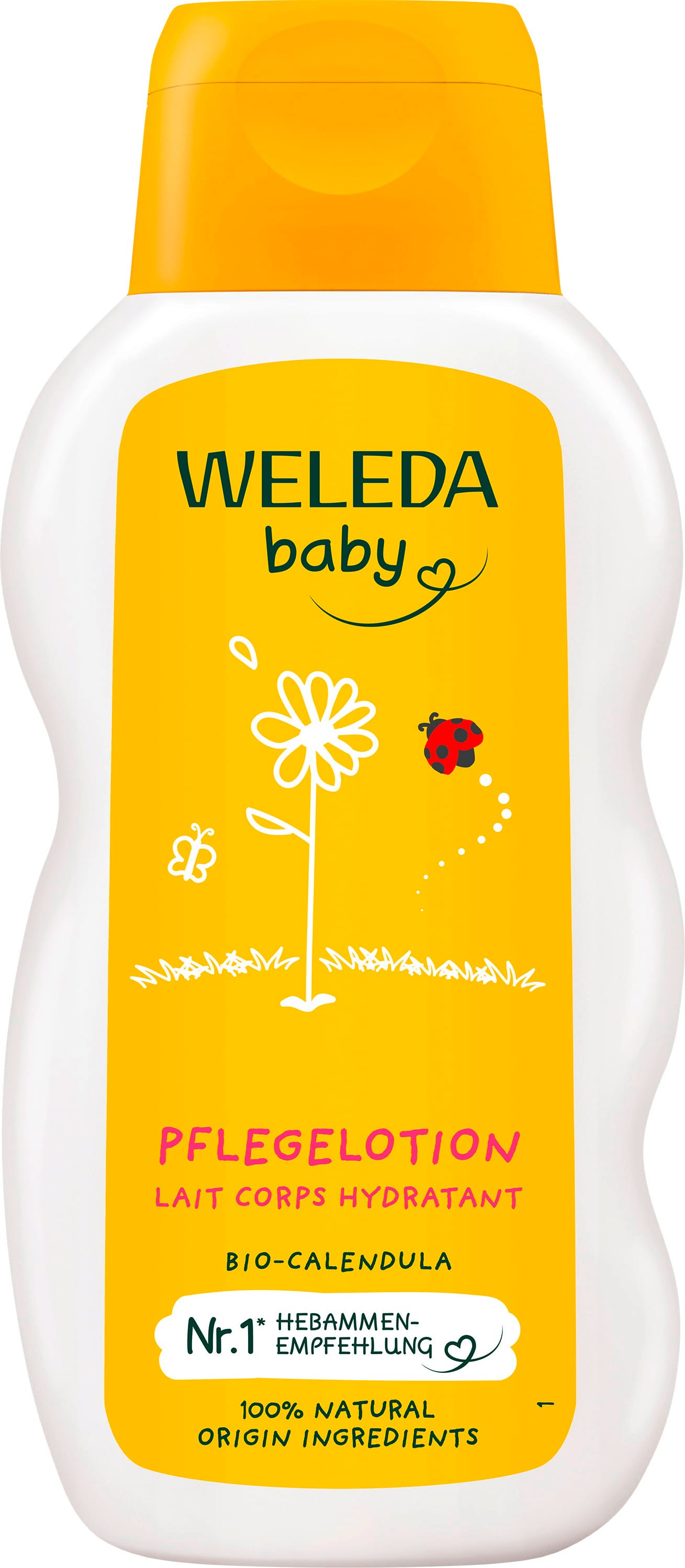 De bijzonder verzorgende Weleda Calendula Bodymilk beschermt de gevoelige huid van baby's en kinderen op natuurlijke wijze en voorziet ze van vocht. Exquise amandelolie uit gecertificeerde biologische teelt maakt de huid zacht en soepel en voorkomt uitdroging. Een extract van gecertificeerde biologische calendula kalmeert de huid. De milde samenstelling ondersteunt de natuurlijke huidfunctie en heeft een delicate geur. De verzorgende melk is gemakkelijk uit te smeren en trekt snel in. Het is ook ideaal voor volwassenen met een gevoelige huid.